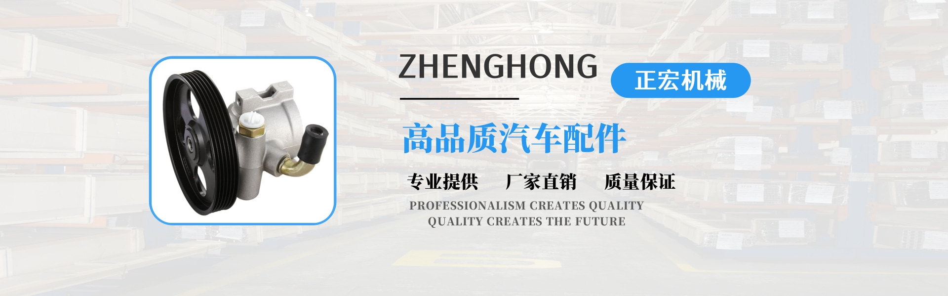 正宏機(jī)械有限公司成立于2004年,是一家新興的技術(shù)型企業(yè),專業(yè)生產(chǎn)動力轉(zhuǎn)向泵。我們是一家集設(shè)計(jì)、生產(chǎn)、貿(mào)易于一體的專業(yè)公司,同時享有進(jìn)出口權(quán)。  公司自成立以來,堅(jiān)持以技術(shù)為導(dǎo)向,以高起點(diǎn)為原點(diǎn);把產(chǎn)品創(chuàng)新和質(zhì)量管理放在首位。擁有國內(nèi)先進(jìn)的汽車動力轉(zhuǎn)向泵專業(yè)生產(chǎn)設(shè)備和檢測設(shè)備。憑借經(jīng)驗(yàn)豐富的技術(shù)團(tuán)隊(duì),我們已經(jīng)設(shè)計(jì)了20多個系列,近數(shù)百個動力轉(zhuǎn)向泵。年產(chǎn)10萬臺。產(chǎn)品深受廣大客戶的信賴和好評,得到了廣大客戶的認(rèn)可。